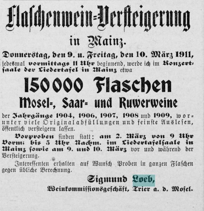 Sigmund LOEB – Weinhändler, Weinkommissionär